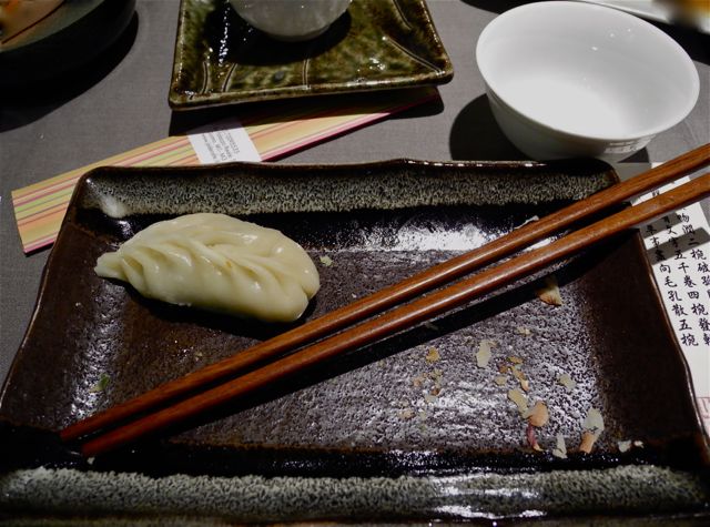 Il terzo tè è stato invece un Da Hong Pao, un Oolong della Valle delle Orchidee. A queste bevande abbiamo accompagnato il Pi Dan, ovvero l’uovo dei cent’anni (un uovo sodo cotto nella cenere… molto particolare), una crepe al profumo di cipollotti e gnocchi di pesce.