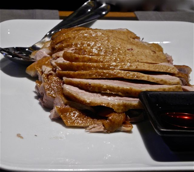 La cena è proseguita con i ravioli ai tre sapori (gamberi, carne e verdura), riso vegetariano, melanzana stufata alla Sichuan (ottima!), gamberi al tè verde Longjing, Xiao Bai Cai (verdura tipica di Shanghai, simile alle nostre coste ma dal sapore più vicino al porro) e anatra affumicata al tè. Come accompagnamento è stato scelto l’Anxi Ti Kuan Yin, un Oolong dal sapore morbido.