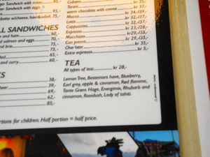 Detto questo, finisce il mio primo assaggio di tè norvegese con un po’ di rammarico, ma entusiasta per i posti che ho visto. Da quello che avevo letto sulla guida, temevo che le Lofoten fossero più una attrazione turistica che altro e invece no, sono delle bellissime isole. Queste montagne innevate che scendono a picco sul mare e le casette dei pescatori dai colori accessi erano davvero suggestive, e che pace… unico difetto: l’odore intenso di pesce, soprattutto la sera. Le Lofoten sono infatti l’unico posto al mondo in cui ci sono le condizioni ideali per l’essiccazione dello stoccafisso. A questo proposito, sapevate che l’Italia è il maggior importatore di stoccafisso norvegese? E pensate, fin dal Medioevo! Altra cosa che mi ha stupito è il fatto che i norvegesi fino a pochi anni fa non mangiavano lo stoccafisso e ora hanno imparato a cucinarlo proprio da noi. Queste cose non c’entrano con il tè, ma mi hanno incuriosito anche perché era il mio primo approccio con la cucina norvegese ed è stato interessante. Altra cosa che ho imparato: in Norvegia i menu si compongono di starter (antipasto), main course (piatto unico) e dessert.