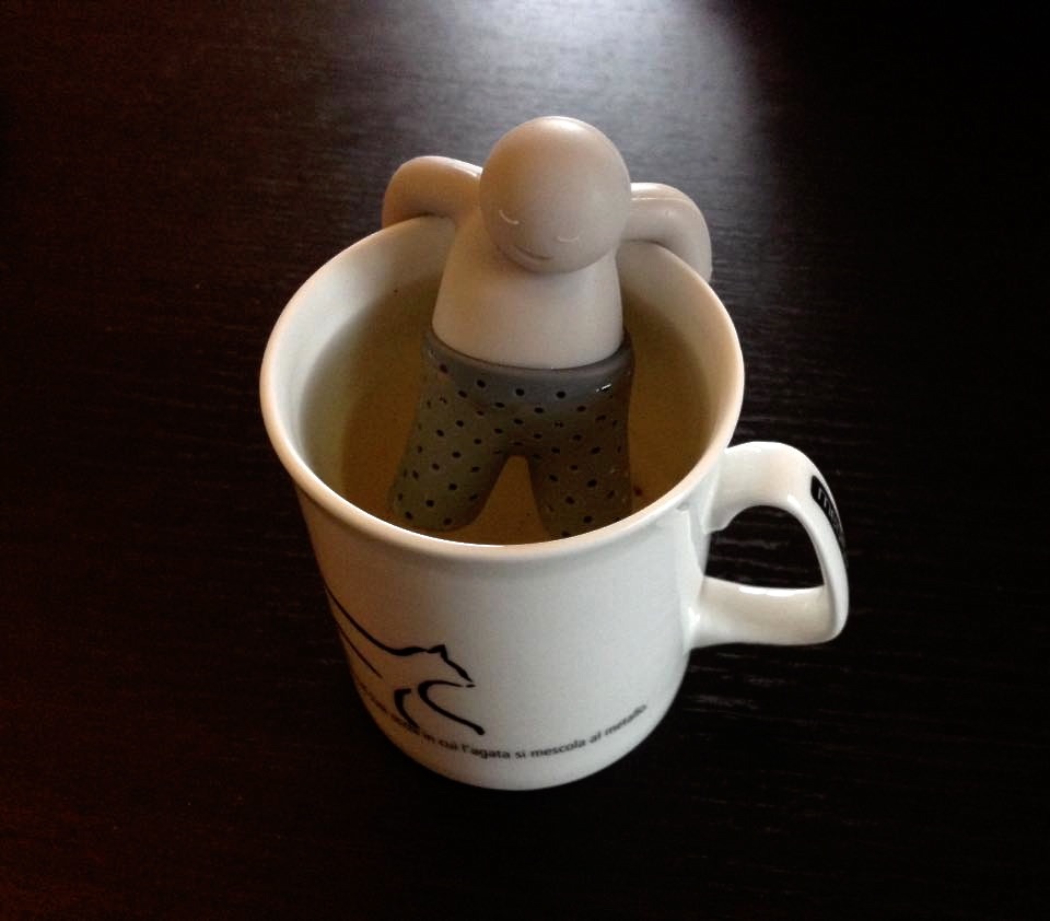 Un mio amico mi ha regalato l’omino che si aggrappa alla tazza e sta “a mollo” nel tè come se fosse in una vasca da bagno… fa troppo ridere e certi giorni d’inverno rappresenta proprio il mio sogno di calore! Lo chiamano Mister Tea, è completamente in silicone e si trova sia in grigio, come il mio, che in altri colori. Lo potete trovare qui: http://amzn.to/2BS7Inh