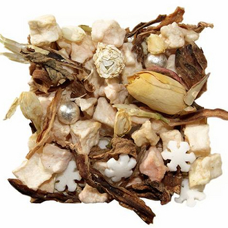 2. Stella stellina de L’essenza del tè, una miscela di pezzi di mela, ibisco bianco, cristalli/stelline di zucchero, cubetti di noce di cocco, perle di zucchero argentate, petali di gelsomino e fiordaliso bianco, camomilla romana, pepe bianco, boccioli di rosa bianchi e aromi.