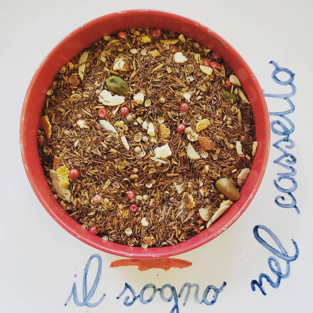 6. Panpepato de Il sogno nel cassetto, un rooibos arricchito con pistacchi, mandorle, arancio, pepe rosa e coriandolo