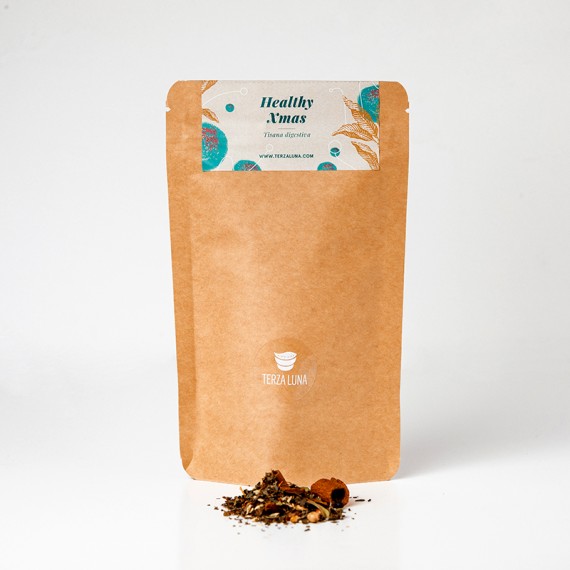 3. Healthy Xmas di Terza Luna a base di tulsi, scaglie di cocco, rooibos verde, zenzero, cardamomo, cannella, pepe rosa, chiodi di garofano, pepe nero e fiori di cartamo