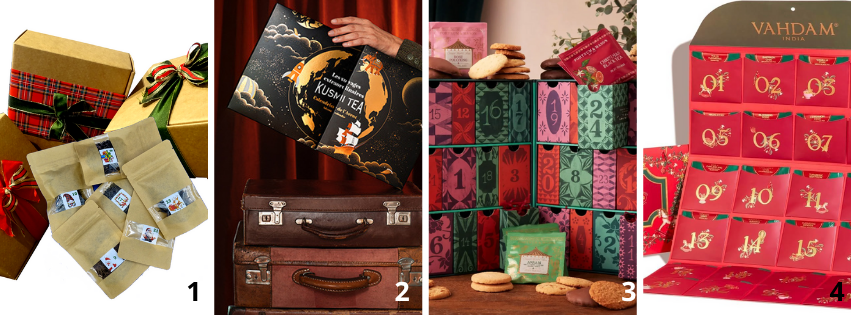 Foto 4. Calendario dell’avvento di Vahdam: 24 bustine piramidali di tè e tisane (quattro in tutto) provenienti dall’India. Costo: € 14,99. Disponibile su Amazon